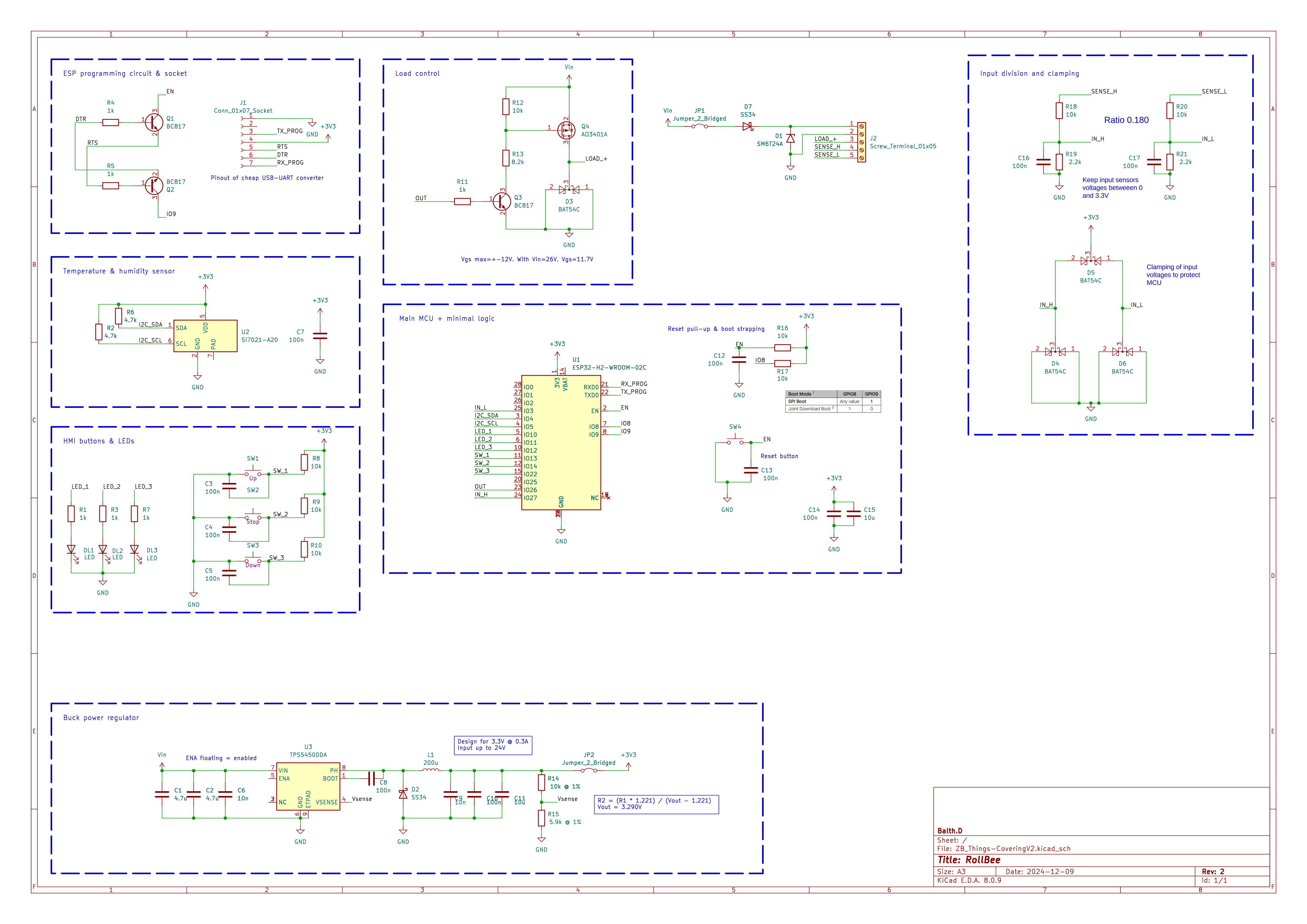 As you can see, the central point is the ESP32-H2. To be exact, it’s an ESP32-H2-WROOM; as a module, I don’t need to design the antenna nor connect an external memory myself. Even better, no QFN device to solder by hand!